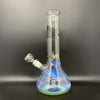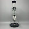 This is your main House Glass Beaker! It stands 12 inches tall and has a mouthpiece that is 2 inches wide. The wide opening has a very comfortable feel to it, and also allows for easy ice loading. There is a three pointed ice pinch at the bottom of the neck for that extra cool down factor. This guy is easily your everyday piece. The beaker houses a standard 14 mm bowl fitting and has an American diffused downstem (slits on the bottom). The diffused downstem forces the smoke to break up in the water, that way more surface area of the smoke touches water. This cools down the smoke, filtering out some of the bad stuff, and making it easier on your lungs. The standard height of this House Glass Beaker is convenient for quick and easy storage, and fast cleaning.